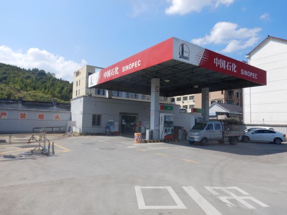 中國石化銷售股份有限公司浙江淳安浪川加油站(以下簡稱“浪川加油站”)屬于中國石化銷售股份有限公司浙江杭州淳安石油支公司下屬加油站,成立于2013年2月6日,位于浙江省杭州市淳安縣浪川鄉大塘村芹畈22-1號,主要經營汽油、柴油的零售業務(不涉及散裝汽油和自助加油),法人代表魏忠勤,統一社會信用代碼為913301270609931984,該站現有員工2人,其中安全管理人員1人。 浪川加油站持有浙江省商務廳核發的成品油零售經營批準證書(油零售證書第31170040號),持有杭州市應急管理局核發的危險化學品經營許可證,登記編號:浙杭安經字[2018]13004782,有效期:2018年12月5日至2021年12月4日,許可經營范圍:帶儲存經營成品油:汽油。 加油站安裝有汽油卸油和加油油氣回收系統。加油區設置加油罩棚,罩棚頂部為輕鋼結構。罩棚下設置2臺雙油品四槍自吸式加油機(汽油加油槍帶油氣回收);埋地油罐區設有3只30m³埋地臥式SF雙層油罐(車道罐),其中30 m³埋地臥式汽油罐2只(分別存放92#汽油和95#汽油),30m³埋地臥式柴油罐1只,油罐總容積折算為75m³(柴油罐折半計入),根據《汽車加油加氣站設計與施工規范》GB50156-2012(2014年版)的相關規定,該加油站為三級加油站。