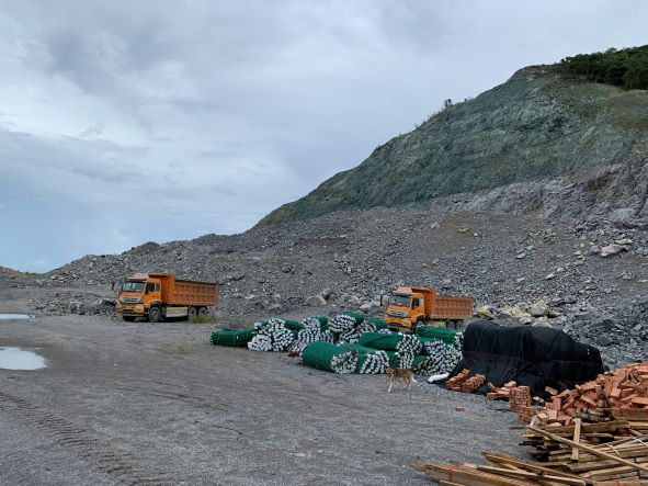 臺州市路橋區金清鎮海燕村朝巖嘴頭建筑用石料(凝灰巖)礦于2018年取得浙江省自然資源廳頒發的采礦許可證,采礦權人:臺州市三鼎礦業有限公司,開采礦種:建筑用石料(凝灰巖),開采方式:露天開采,生產規模:280萬噸/年,礦區面積:0.286km2,開采深度:+10m~+147.6m,有效期限:2018年3月1日~2033年3月1日,該礦于2020年10月12日取得浙江省應急管理廳頒發的安全生產許可證,證號:(浙)FM安許證字〔2020〕JKS003,有效期至2023年10月11日。