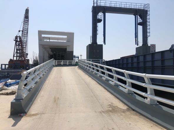 岱山縣燕窩山陸島交通碼頭工程位于岱山東沙鎮(zhèn)燕窩山西側(cè),岱山縣燕窩山陸島交通碼頭工程水域部分共新建2個3000總噸級車渡泊位(水工結(jié)構(gòu)按靠泊5000總噸級船舶設(shè)計)、2個1000總噸級客運泊位、1座引橋、1座透空式防波堤及相應(yīng)配套輔助設(shè)施,泊位總長為400m,引橋總長約為1040m,凈寬12m,防波堤總長度為650m。岱山縣燕窩山陸島交通碼頭工程設(shè)計客運年通過能力為188.6萬人次,車輛年通過能力為14萬輛。