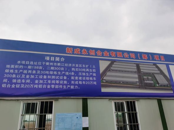 新成永創(chuàng)合金有限公司年產(chǎn)20萬噸鋁合金錠及20萬噸鋁合金零部件項目于2021年8月23日在衢江區(qū)經(jīng)濟和信息化局(中小企業(yè)局)進行備案,項目代碼:2020-330803-33-03-176364。