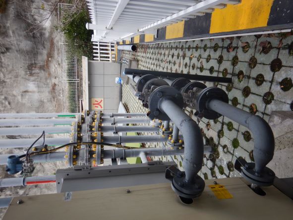 加油站安裝有汽油卸油和加油油氣回收系統(tǒng)以及三次油氣回收系統(tǒng)。加油區(qū)設(shè)置加油罩棚,罩棚頂部為輕鋼結(jié)構(gòu)。罩棚下設(shè)置4臺(tái)雙油品四槍潛油泵式加油機(jī)(汽油加油槍帶油氣回收)和1臺(tái)尿素液加注機(jī);埋地油罐區(qū)設(shè)有5只30 m³埋地臥式SF雙層油罐(非車道罐),其中30 m³埋地臥式汽油罐4只(92#汽油罐2只、95#汽油罐1只、98#汽油罐1只),30m³埋地臥式柴油罐1只,油罐總?cè)莘e折算為135m³(柴油罐折半計(jì)入),根據(jù)《汽車加油加氣加氫站技術(shù)標(biāo)準(zhǔn)》GB50156-2021的相關(guān)規(guī)定,該加油站為二級(jí)加油站。